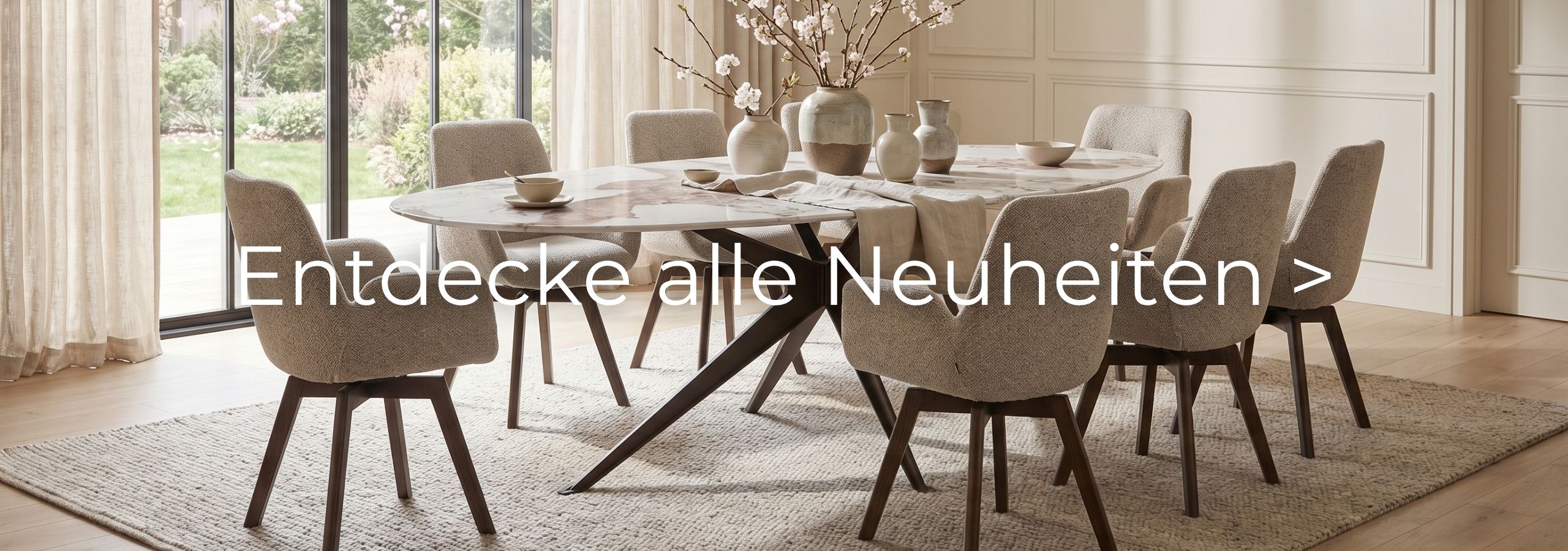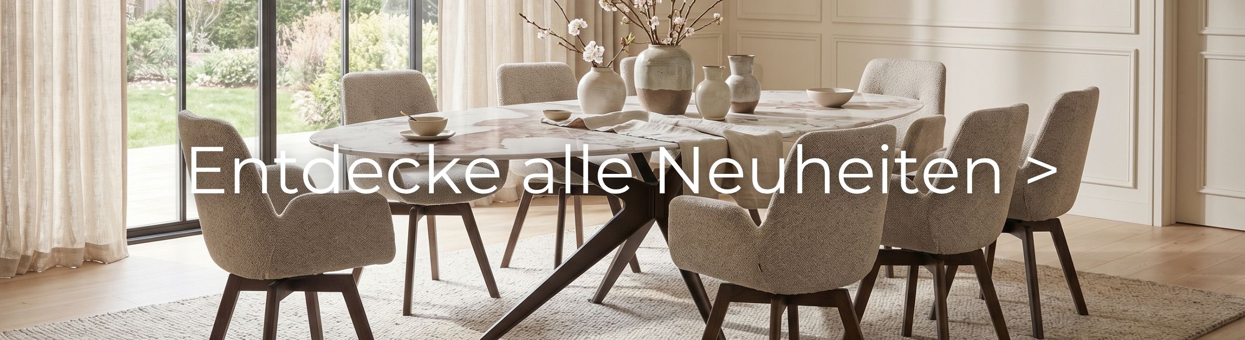 Bei Riess Ambiente gibt es immer etwas Neues zu entdecken. Unsere Möbel Neuheiten zeigen Dir regelmäßig die aktuellsten Designs aus unserem Sortiment und bringen frische Impulse in Dein Zuhause. Ob Du gezielt nach den neuesten Möbeln suchst oder Dich einfach inspirieren lassen möchtest – hier findest Du eine ständig aktualisierte Auswahl an neuen Produkten.